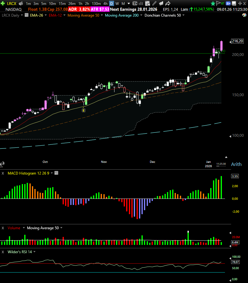 LRCX has gone vertical into year-start, and that matters because vertical moves usually transition into one of three outcomes: