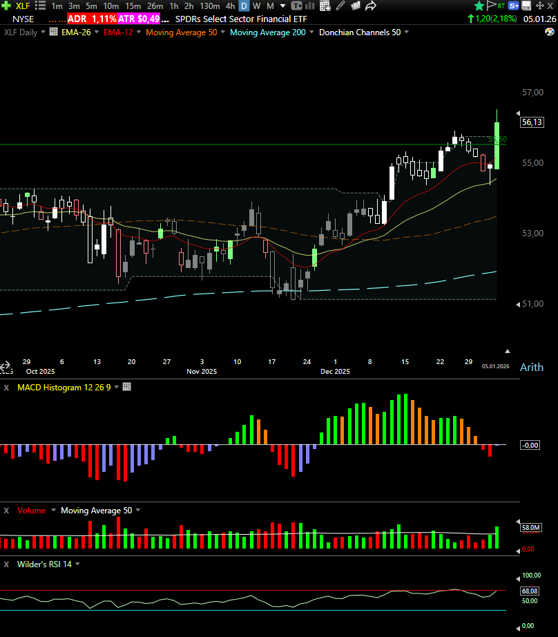 On Monday I opened a new bearish debit position in the Financials sector via State Street Financial Select Sector SPDR ETF (XLF). While the broader trend remains constructive on higher timeframes, short-term price behavior is starting to show signs of slowing momentum rather than clean continuation.