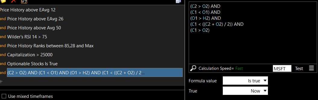 In TC2000, I use a custom scanner to isolate these setups on large-cap, optionable stocks with clear technical structure.