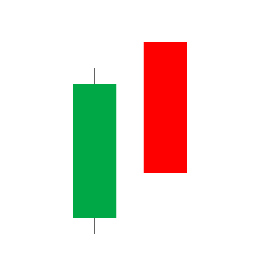 Importantly, the second candle does not fully engulf the first one (unlike Bearish Engulfing)