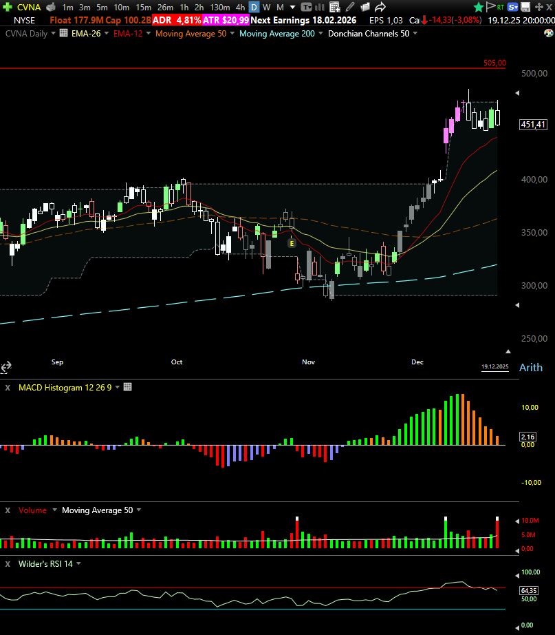 The December 16 Bear Call Spread on Carvana (CVNA) closed with a full-premium win as the stock failed to deliver any meaningful upside continuation after its mid-week attempt. Despite holding near highs, momentum continued to fade into Friday, and price remained well below the short strike into expiration.