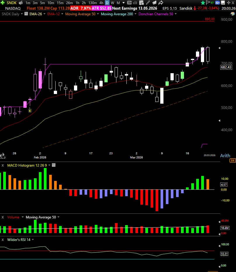 The March 16 setup on SanDisk Corp (SNDK) played out exactly as structured, with price staying well below the risk zone and both options expiring worthless.
