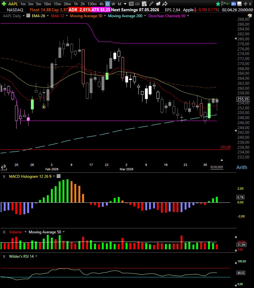 This shift further reduced downside pressure on AAPL, reinforcing the original thesis of fading momentum rather than continuation.