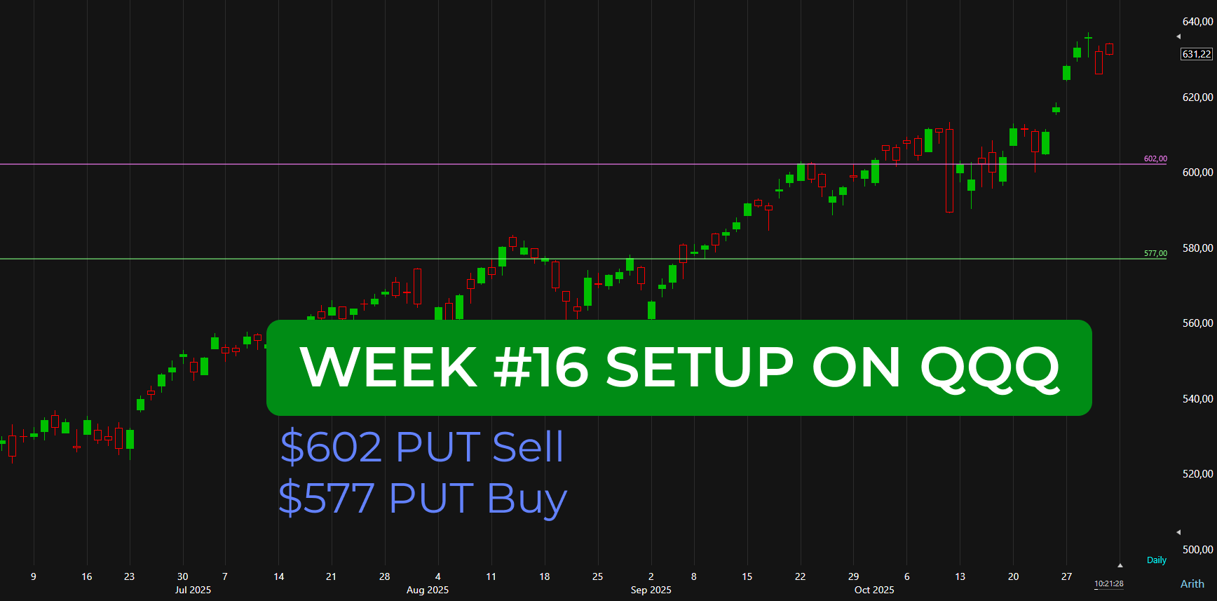 If QQQ trades below 602 during the week, I’ll monitor closely and manage accordingly — with a possible early exit or transition into the recovery phase (LEAPS + covered calls).